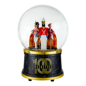 Celebrate 100 years of the Rockettes with this stunning snow globe featuring the dancers in their iconic costumes from Santa’s Circus, Parade of the Wooden Soldiers, and the Purple Usherette—all set against the legendary Radio City Music Hall proscenium.