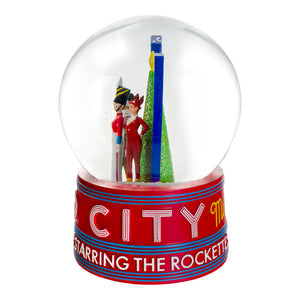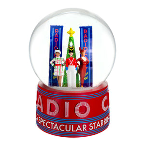 A delightful holiday keepsake. The Rockettes are elegantly showcased in their iconic “New York at Christmas” Jacket, “Parade of the Wooden Soldiers”, and “Sleigh Ride” costumes, bringing the spirit of the show to life alongside the Radio City marquee and a charming Christmas tree. Turn the key to hear the classic holiday tune, "Jingle Bells," as you watch the snow swirl around!